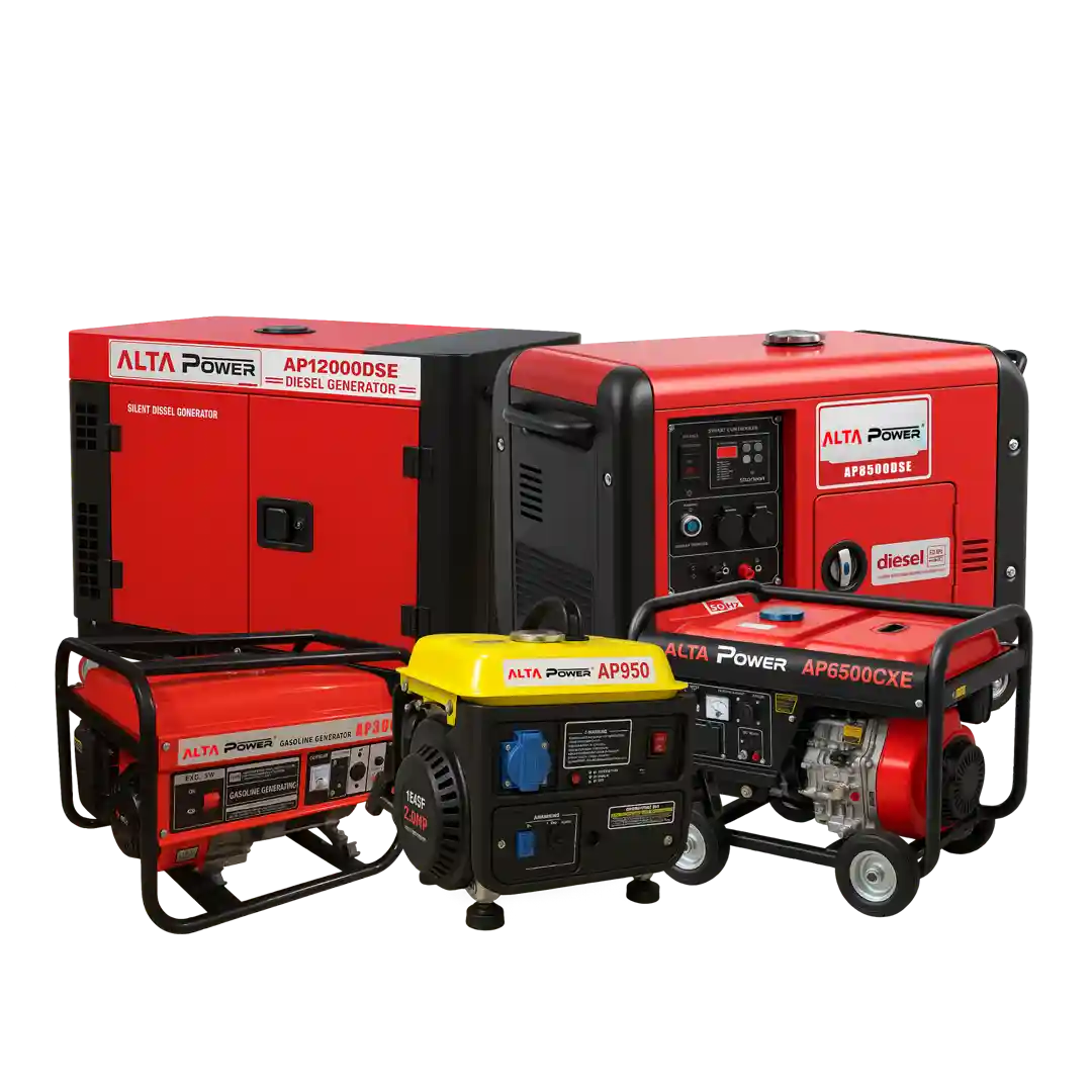 AltaPower delivers reliable power solutions for every need. Our petrol generators (0.75–8 kVA) are compact and ideal for homes and small businesses, while our diesel generators (6–200 kVA) provide robust, fuel-efficient power for industries, institutions, and large-scale operations. Built for performance and durability, AltaPower is your trusted source for dependable energy. In Ghana, Alta Power products are distributed by HTC.